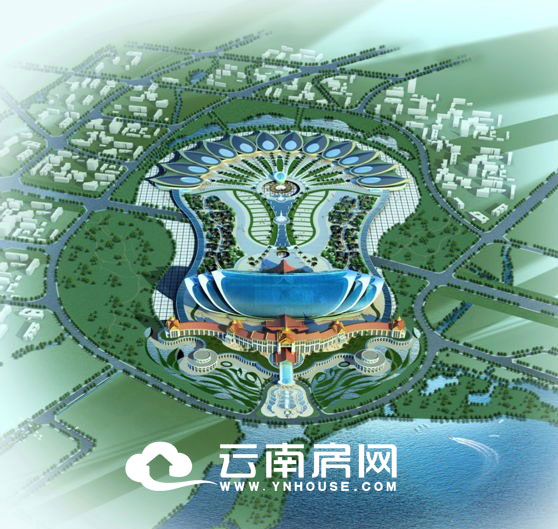 今年6月出現(xiàn)在網(wǎng)上的天堂島與昆明新國際會展中心效果圖