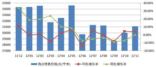 圖3-2:2011年12月-2012年11月昆明商業(yè)銷售價(jià)格走勢(shì)圖(數(shù)據(jù)來源:至祥研究中心)