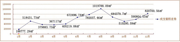 金九銀十,昆明樓市銷售數(shù)據(jù)大幅下跌,一直從5月持續(xù)到8月份的月均成交套數(shù)8000+的記錄被打破,九月成交商品房7879套,成交面積為684379.7㎡;而到了十月,5796套的成交數(shù)據(jù)一下將昆明樓市月成交成績,拉回到4月份樓市回暖伊始的水平。好在進(jìn)入11月份之后,昆明樓市土地供應(yīng)出現(xiàn)高潮,大量的土地出讓,給了房地產(chǎn)市場足夠的信心,而開發(fā)商每個周末連綿不斷的營銷活動,讓2012年最后時刻,上演了“逆襲”。12月,昆明商品房成交套數(shù)為7220套,與11月份7301套基本持平,但值得注意的是:12月份昆明商品房成交總面積為820700.56㎡,較11月份590804.53㎡暴漲了38.9%,其820700.56㎡的成交數(shù)據(jù),僅次于8月份的1019788.09㎡,位列2012年月銷售面積的亞軍。樓市年末銷售翹尾,將全年銷售數(shù)據(jù)拉回到正常水平,可謂保住了2012年樓市的晚節(jié)。