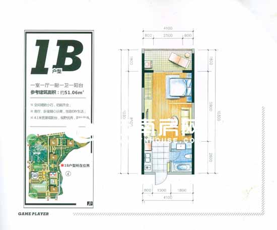 一室一廳一廚一衛(wèi)一陽臺的1B戶型