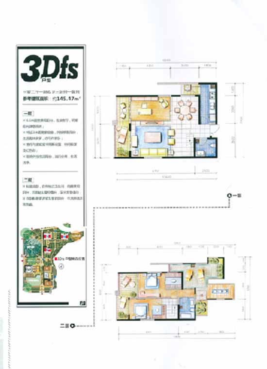 145.47平米的為三室兩廳一廚雙衛(wèi)三陽臺一露臺的3Dfs戶型,該戶型主要分布在4棟、5棟和6棟,或與社區(qū)運動場所相依,或與城市公園相鄰。躍層結(jié)構(gòu)的設(shè)計,戶型還算方正,格局功能劃分合理,動靜分區(qū),雙衛(wèi)生間配置,保證生活私密性;廚房連通生活陽臺,延展了功能區(qū)域,加強(qiáng)通風(fēng)性的同時方便了主人洗曬。