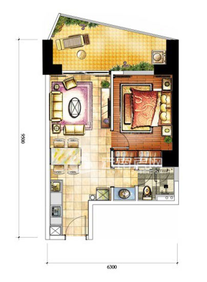C2戶型名為品味,為一室兩廳一衛(wèi)戶型,建筑面積69.00平米。該戶型將內(nèi)部空間中的客廳、餐廳與臥室做了隔斷,在一定程度上可保證業(yè)主的私密性。不規(guī)則陽(yáng)臺(tái)面積較大,且面積贈(zèng)送一半,但如果是一家人居住,空間還是略顯局促。