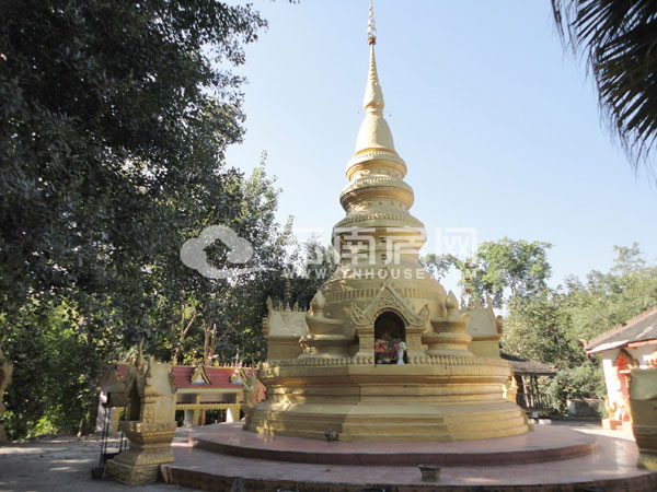打的需要七塊錢的路程騎車也要不了多少時間。去佛寺需向右拐,而我們要去的嘎灑,還未到佛寺門前,看到路邊一片簇新的別墅群,便可繼續(xù)右拐;窝燮骋娺@片建筑群的名稱:曼弄楓—山水林溪,還跟同伴打趣說,版納的房地產(chǎn)開發(fā)商還多有水平的嘛,起這種浪漫的名字,比某某豪庭某某至尊好聽多了。