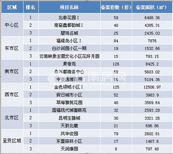 本周備案前三槍分別位于南市區(qū)、西市區(qū)和東市區(qū),排名順序?yàn)椋汗阍、金色領(lǐng)域小區(qū)Ⅰ與福緹島小區(qū)Ⅰ。