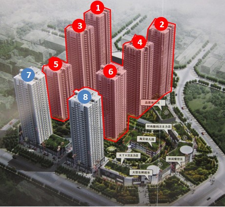 7、8為回遷房,1-2層規(guī)劃為商業(yè),3-32層為住宅。