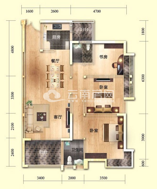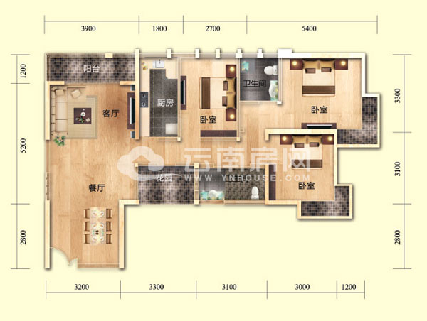 B3戶型同樣為三室兩廳一廚兩衛(wèi)兩陽臺,建筑面積為116.15平米,從平面圖上看,B3戶型最大的亮點便是一個8平米的陽臺,只要在裝修時好好設(shè)計,陽臺空間將會發(fā)揮意想不到的作用,或放置一張咖啡桌,或做成玻璃花房,這個8平米的空間將在業(yè)主的自主能動性中變得美輪美奐。該戶型的動靜區(qū)分明,戶型的左邊為日;顒訁^(qū),而右側(cè)則為休息區(qū),同時,明廚明衛(wèi)、布局緊湊也是該戶型的優(yōu)點。