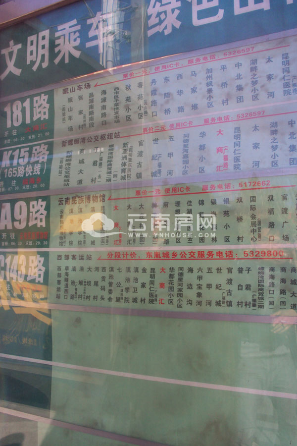 雖然在騎電動車很快捷,但公交仍然是大部分人出行的重要工具,所以小編在停放好電動車后,便步行至項目附近的公交站臺,對公交路線詳細的了解了一番。中天融域附近的公交站名為大商匯,距離項目最近的公交站點分別為大商匯(廣福路)與大商匯(前興路)兩個。從站牌顯示的信息看出,129、181、K15、A9、24、78、K9等公交路線?看笊虆R(廣福路)站,遠至呈貢,近可直達著名旅游景點民族村,公交出行的便利程度較高。同時,項目周圍路網(wǎng)系統(tǒng)發(fā)達,緊鄰的廣福路是連接昆明舊城區(qū)和呈貢的新區(qū)的主干道,而前興路、官南大道、青年路與環(huán)線交通交叉,有利于自駕業(yè)主較為快捷的進入城市中心地區(qū)。在規(guī)劃中,昆明地鐵將逐步通車,屆時昆明整體的堵車情況將會有較大的改善,中天融域的區(qū)位優(yōu)勢則會更為明顯。
