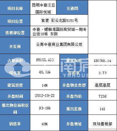 周圍交通:泛亞國際·悅城臨近地鐵1號線串聯(lián)輕軌1號線、4號線、8號線,南部客運站、螺螄灣公交樞紐站等四大車站近在咫尺,20余條公交線路通達全城,彩云北路、廣福路、昆玉高速等5條主干道,18條次干道環(huán)繞四周,交通便利。