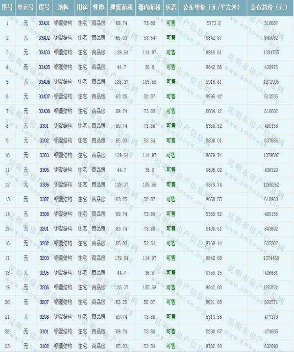 潤城小區(qū)Ⅶ一幢準(zhǔn)售房源及房價(jià)公示