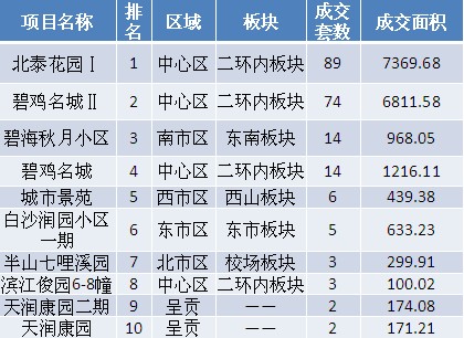 本周備案前三強(qiáng)分別位于與南市區(qū),排名先后順序?yàn)椋罕碧┗▓@I、碧雞名城II和碧海秋月小區(qū)。注:2月1-3號備案系統(tǒng)未公布成交數(shù)據(jù),項(xiàng)目top10排名僅做參考。