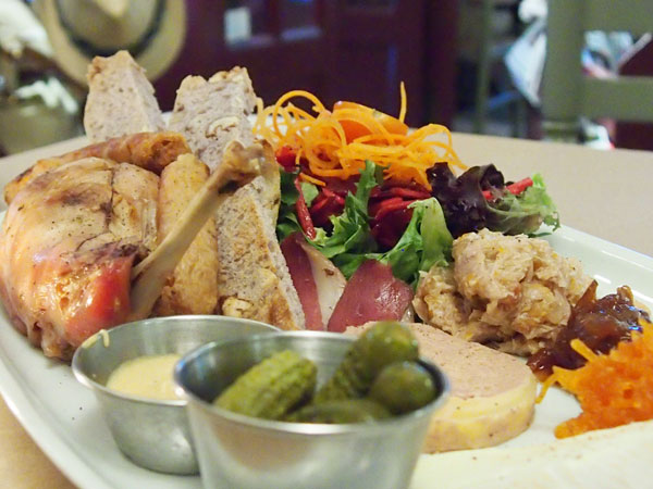 西餐的用材范圍本就狹窄,兔肉和鴨肉是餐牌上罕見的名稱,法式廚子果然有幾分迎難而上的豪情。長長的等位隊(duì)伍,我被特殊照顧,因?yàn)橐粋(gè)人的座位不需等。有時(shí)獨(dú)行還是有獨(dú)行好處的,兩個(gè)人雖有了伴,可也相互牽制甚至顧此失彼,連吃個(gè)飯找個(gè)位也更艱難,更何況好不容易等來了位,不整個(gè)燭光晚餐浪漫一番怎么甘心,一晚上時(shí)光又耗掉了——這樣不解風(fēng)情暗暗揣度著,我點(diǎn)的菜來了:好大的一盤!好豐富的內(nèi)容!兔腿、鴨肝、熏肉、兔腸、魁北克cheese、鴨肉絲肉球、兩種法式開胃菜、腌小黃瓜、多種谷物面包、蔬菜沙拉……我都懷疑一個(gè)盤子如何盛得下這些五花八門。趕緊舉叉品嘗,如一位美食家般頻頻點(diǎn)頭:不錯(cuò),兔腿有成都煙熏兔子的味道,鴨肝豐腴而不膩,腌肉不咸不淡恰到好處,cheese淳厚,滿齒留香……更難得的是,各種滋味不是蜂擁而上,而是有層次,有間隔地依次登場,味蕾被充分照料的感覺真好。就這樣,一個(gè)人,吃得不亦樂乎,如享用一臺(tái)《巴貝特的盛宴》。