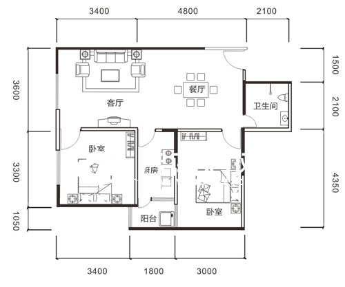 80平米的A2-2為兩室兩廳設(shè)計(jì),進(jìn)門便是客廳、餐廳,給人的感覺還不錯(cuò),而且2個(gè)臥室以及廚房都是直接從客廳進(jìn)入,沒有過道連接,節(jié)省了空間。事物往往都具有兩面性,在節(jié)省空間的同時(shí),也忽略了家具的擺放了,從戶型圖上看,該戶型的電視只能安裝在大臥室的墻體上,對(duì)主人的休息可能會(huì)造成一定的影響;且廚房夾雜主臥室與次臥室之間,次臥室需要從與廚房連接的生活陽(yáng)臺(tái)采光,可能會(huì)對(duì)次臥室的采光造成一定影響。而公衛(wèi)的設(shè)計(jì)想必很多人也都不會(huì)滿意。