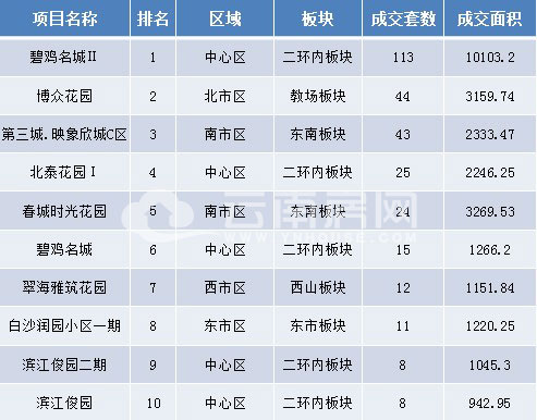 本周房地產(chǎn)市場(chǎng)交易套數(shù)三強(qiáng)