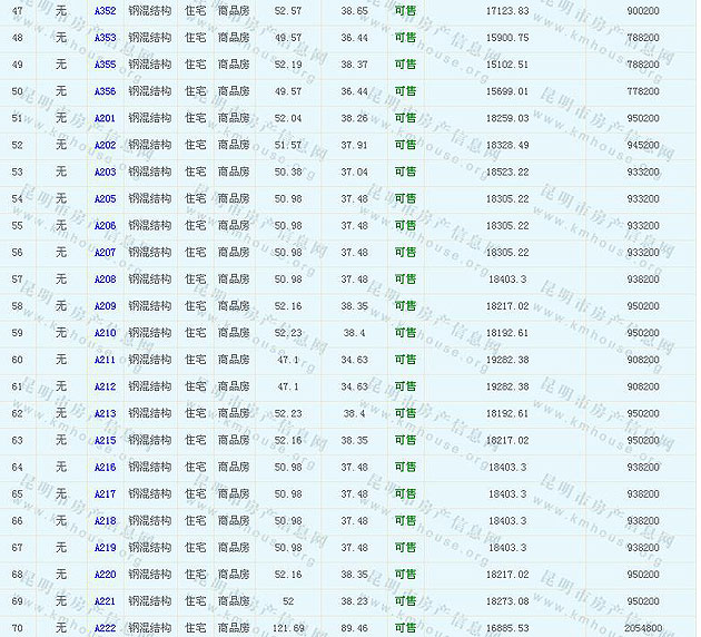 根據(jù)云南省物價(jià)局關(guān)于發(fā)布《云南省商品房銷(xiāo)售明碼標(biāo)價(jià)實(shí)施細(xì)則(試行)》的通知,現(xiàn)將該項(xiàng)目商品住房的準(zhǔn)售房源及每套房屋價(jià)格向社會(huì)公布,房地產(chǎn)開(kāi)發(fā)企業(yè)應(yīng)嚴(yán)格按照公布價(jià)格,商品房銷(xiāo)售明碼標(biāo)價(jià)實(shí)行一套一標(biāo)。商品房經(jīng)營(yíng)者應(yīng)當(dāng)對(duì)每套商品房按照建筑面具進(jìn)行明碼標(biāo)價(jià),否則,房產(chǎn)登記機(jī)關(guān)不予登記備案。準(zhǔn)售房源及房?jī)r(jià)信息如下: