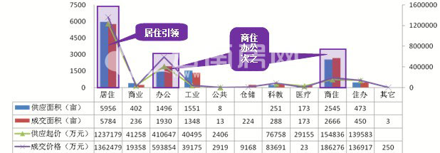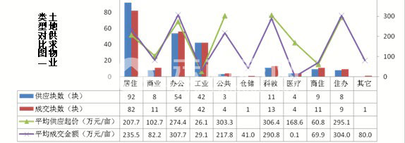 土地供求類型較廣,涵蓋多種類型土地,以居住用地為主,商住、辦公和工業(yè)用地供求也較為旺盛。