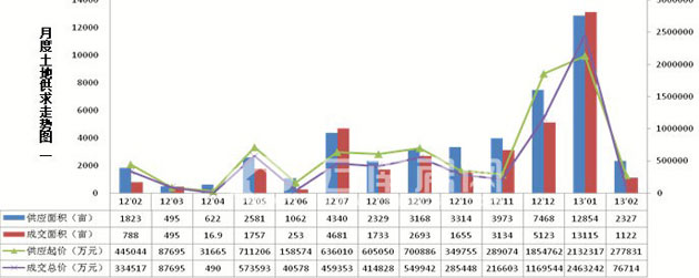 2013年1、2月昆明土地規(guī)劃審批走勢