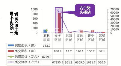 2月份昆明土地供應(yīng)集中在主城空港、呈貢和滇池區(qū)域;土地成交則集中在輔城的安寧區(qū)域。