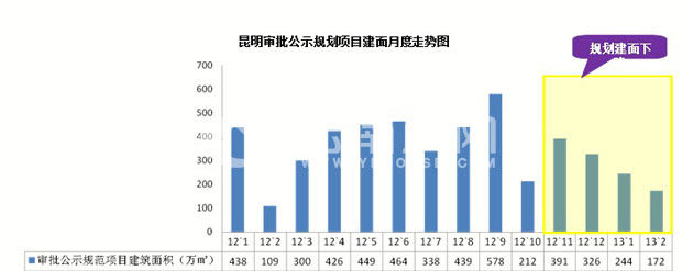 2013年1、2月昆明土地規(guī)劃審批走勢(shì)