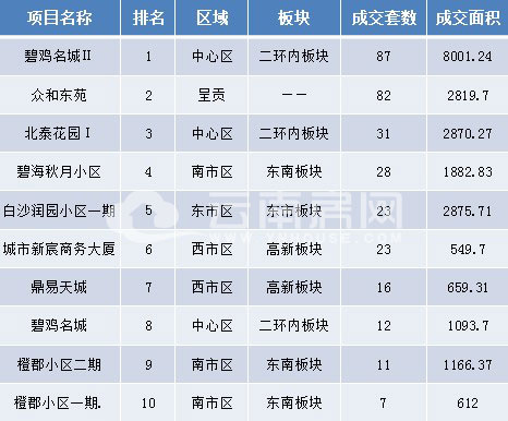 本周房地產(chǎn)市場交易套數(shù)三強(qiáng)