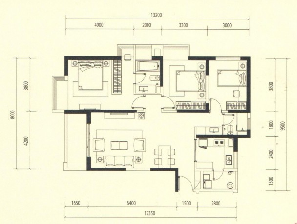 紫檀F1戶型,125平方米,三室二廳二衛(wèi)。進(jìn)門有一個玄關(guān)設(shè)計,據(jù)說這個玄關(guān)柜體也很有講究。是按照亞洲人身高和收納柜高度的關(guān)系進(jìn)行研究,使玄關(guān)柜體設(shè)計符合人體工程學(xué)。并且采用活動隔板,可根據(jù)儲藏物品大小隨意的更改儲藏空間。明廚明衛(wèi),動靜分區(qū),干濕分離,沒有多余浪費(fèi)的空間,是一個非常經(jīng)典的三房設(shè)計。缺點(diǎn)是公衛(wèi)偏小。