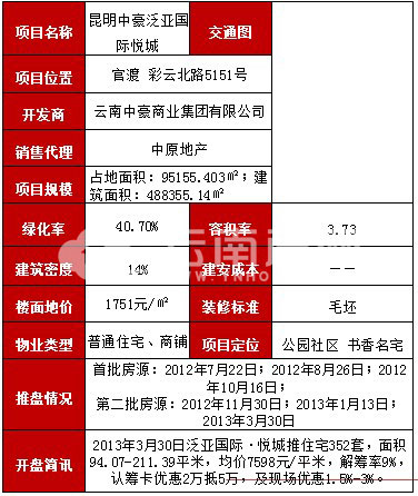 周圍交通:泛亞國(guó)際·悅城臨近地鐵1號(hào)線串聯(lián)輕軌1號(hào)線、4號(hào)線、8號(hào)線,南部客運(yùn)站、螺螄灣公交樞紐站等四大車站近在咫尺,20余條公交線路通達(dá)全城,彩云北路、廣福路、昆玉高速等5條主干道,18條次干道環(huán)繞四周,交通便利。