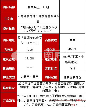 朝九晚五開盤分析:均價8442元/平米 銷售率84%
