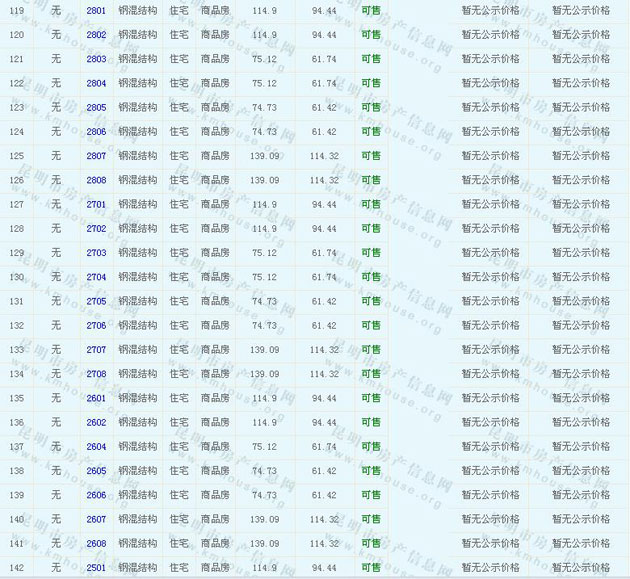 譽(yù)峰峰景花園(D區(qū))商品住房的準(zhǔn)售房源