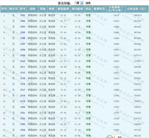 根據(jù)云南省物價(jià)局關(guān)于發(fā)布《云南省商品房銷(xiāo)售明碼標(biāo)價(jià)實(shí)施細(xì)則(試行)》的通知,現(xiàn)將該項(xiàng)目商品住房的準(zhǔn)售房源及每套房屋價(jià)格向社會(huì)公布,房地產(chǎn)開(kāi)發(fā)企業(yè)應(yīng)嚴(yán)格按照公布價(jià)格,商品房銷(xiāo)售明碼標(biāo)價(jià)實(shí)行一套一標(biāo)。商品房經(jīng)營(yíng)者應(yīng)當(dāng)對(duì)每套商品房按照建筑面具進(jìn)行明碼標(biāo)價(jià),否則,房產(chǎn)登記機(jī)關(guān)不予登記備案。準(zhǔn)售房源及房?jī)r(jià)信息如下: