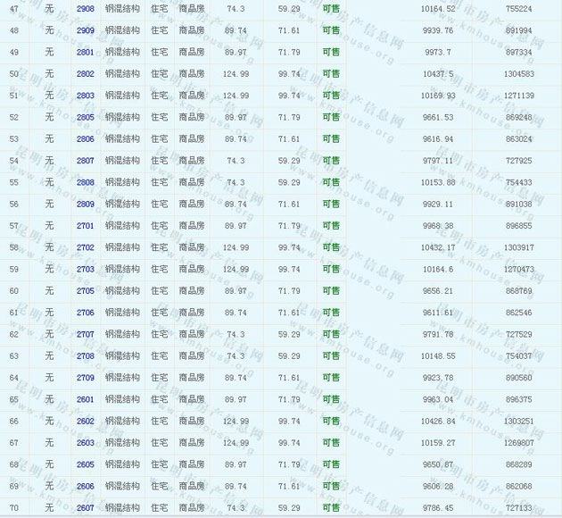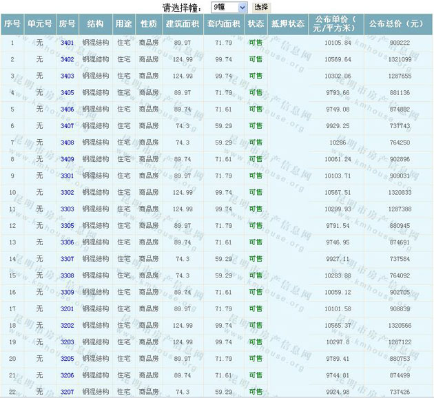 根據(jù)云南省物價(jià)局關(guān)于發(fā)布《云南省商品房銷售明碼標(biāo)價(jià)實(shí)施細(xì)則(試行)》的通知,現(xiàn)將該項(xiàng)目商品住房的準(zhǔn)售房源及每套房屋價(jià)格向社會(huì)公布,房地產(chǎn)開(kāi)發(fā)企業(yè)應(yīng)嚴(yán)格按照公布價(jià)格,商品房銷售明碼標(biāo)價(jià)實(shí)行一套一標(biāo)。商品房經(jīng)營(yíng)者應(yīng)當(dāng)對(duì)每套商品房按照建筑面具進(jìn)行明碼標(biāo)價(jià),否則,房產(chǎn)登記機(jī)關(guān)不予登記備案。準(zhǔn)售房源及房?jī)r(jià)信息如下: