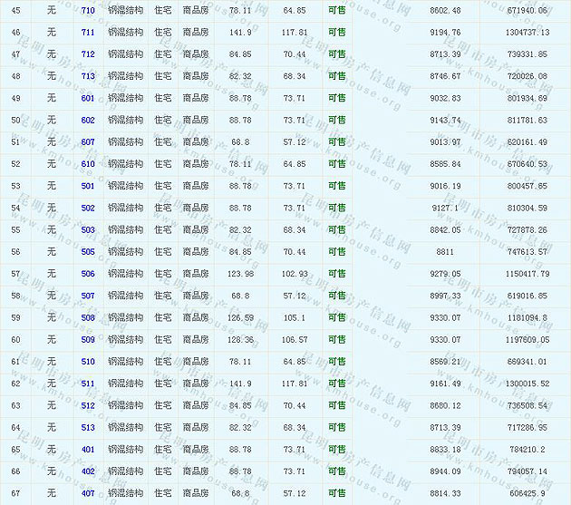根據(jù)云南省物價(jià)局關(guān)于發(fā)布《云南省商品房銷售明碼標(biāo)價(jià)實(shí)施細(xì)則(試行)》的通知,現(xiàn)將該項(xiàng)目商品住房的準(zhǔn)售房源及每套房屋價(jià)格向社會公布,房地產(chǎn)開發(fā)企業(yè)應(yīng)嚴(yán)格按照公布價(jià)格,商品房銷售明碼標(biāo)價(jià)實(shí)行一套一標(biāo)。商品房經(jīng)營者應(yīng)當(dāng)對每套商品房按照建筑面具進(jìn)行明碼標(biāo)價(jià),否則,房產(chǎn)登記機(jī)關(guān)不予登記備案。準(zhǔn)售房源及房價(jià)信息如下: