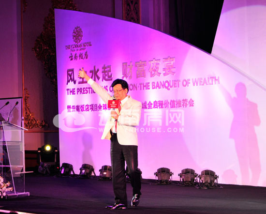 在云旅地產(chǎn)和龍宇地產(chǎn)兩大公司的常務(wù)副總經(jīng)理羅瑞珊和北京三英禾田機(jī)構(gòu)總經(jīng)理趙亮的致辭結(jié)束之后,全國知名的地理地貌學(xué)大師宋韶光“接管了”舞臺(tái)。他從生肖方面入手,為大家分析了生肖運(yùn)勢(shì)、家居風(fēng)水、辦公室風(fēng)水等問題,并從歷史學(xué)、地理學(xué)、地貌學(xué)、風(fēng)水學(xué)等風(fēng)水學(xué)的角度分析了他眼中的云南飯店和潤城。