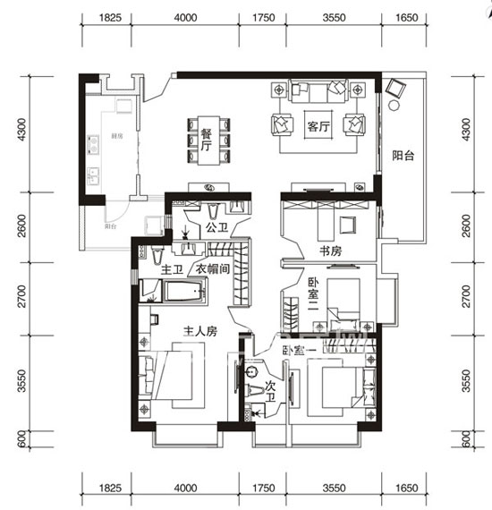 從戶型圖來看,該戶型的動靜區(qū)分明,客廳、餐廳、廚房一字排開,日常生活中的活動區(qū)較為集中,景觀陽臺從客廳一直延伸至書房,長度近7米,昆明四季入春的氣候,得到了眾多花草的青睞,若是以各式各樣的花花草草,在陽臺的邊緣形成一條景觀帶,不止愜意,而且富有情調(diào)。主臥自帶衣帽間和衛(wèi)生間,寬敞而功能齊全,此外,與主臥相鄰的次臥也自帶衛(wèi)生間,若是與老人同住,這樣的設(shè)計便十分貼心。臥室、書房并排而立,位于公共衛(wèi)生間的對面。