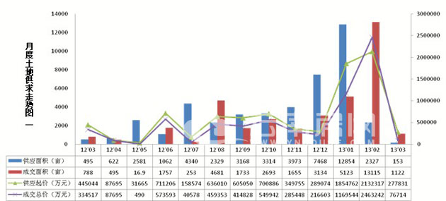 2013年3月昆明土地規(guī)劃審批走勢(shì)