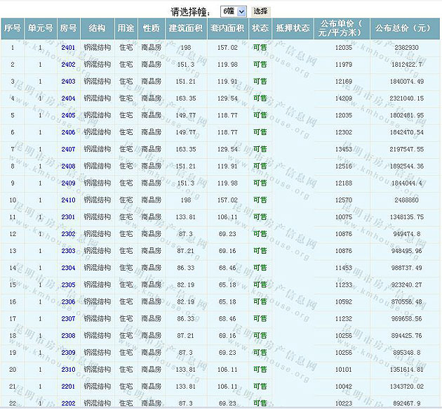 6棟準(zhǔn)售房源