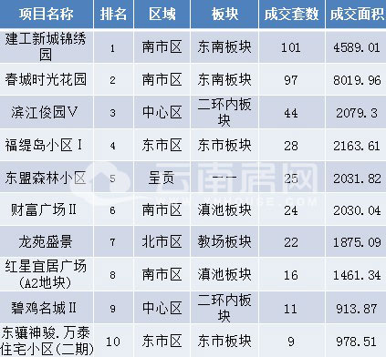第18周房地產(chǎn)市場(chǎng)交易套數(shù)三強(qiáng):本周備案前三強(qiáng)分別位于南市區(qū)與中心區(qū),排名先后順序?yàn)椋航üば鲁清\繡園、春城時(shí)光花園和濱江俊園V。注:項(xiàng)目top10排名僅做參考。