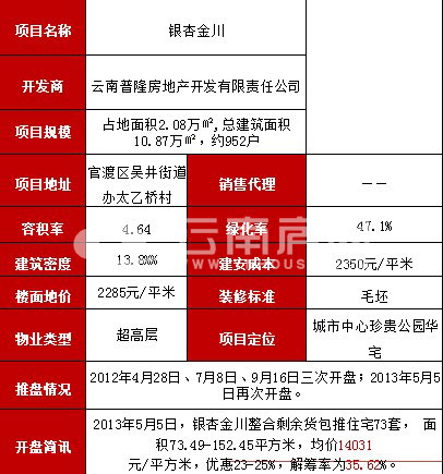 銀杏金川花園由4棟超高層住宅組成,其中1號(hào)樓共13層為回遷戶住宅樓,2、3、4號(hào)樓為商品住宅樓,共43層。項(xiàng)目總占地面積20826.77平米,其中回遷戶住宅建筑面積7154.94㎡,商品住宅建筑面積74987.37㎡,共有952戶,可入住人數(shù)約3430人;