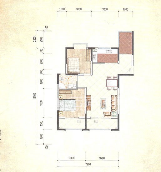 此戶型為經(jīng)典兩房戶型,帶入戶花園,保證業(yè)主私密性的同時(shí),增加可利用空間;此戶型南北通透,廚房、餐廳、客廳、陽(yáng)臺(tái)四位一體,動(dòng)靜線相宜;主臥與陽(yáng)臺(tái)相連,次臥帶明亮飄窗,保證通風(fēng)和采光問(wèn)題。