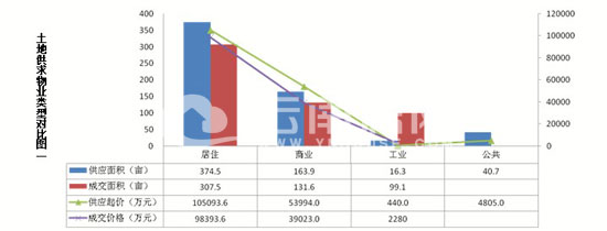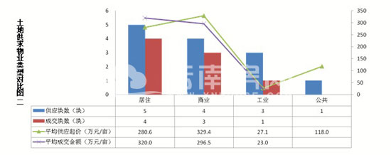 土地供求數(shù)量居住和商業(yè)最多;成交均價(jià)方面居住用地320萬元/畝,商業(yè)用地296.5萬元/畝。