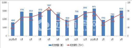 2013年4月昆明市房地產(chǎn)市場(chǎng)合計(jì)備案9114套,比上月增加1733套,環(huán)比增長(zhǎng)23.48%,比去年同期增加4274套,同比增長(zhǎng)88.31%;