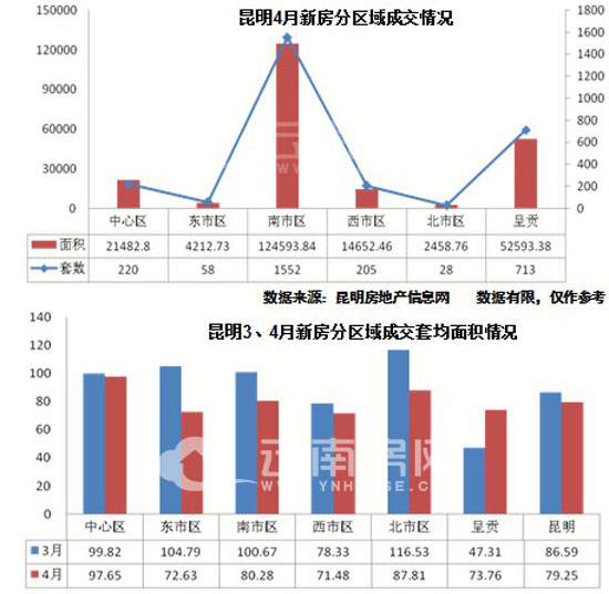 4月監(jiān)測(cè)備案套數(shù)排名前三的區(qū)域分別是:南市區(qū)、呈貢與中心區(qū)。其中,南市區(qū)備案1552套,呈貢備案713套,中心區(qū)備案220套。余下區(qū)域在3月份均有成交,成交量相對(duì)較低;