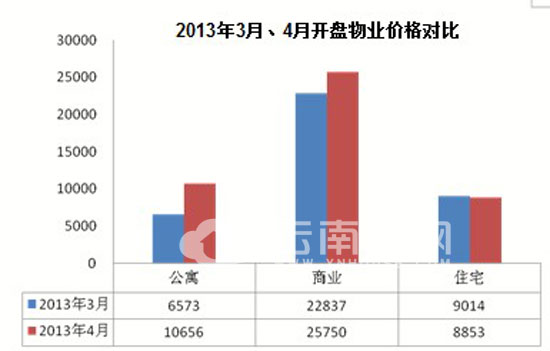 公寓、公寓價格:4月公寓、商業(yè)項目開盤均價分別為10656元/㎡、22837元/㎡,較3月均有所增長。