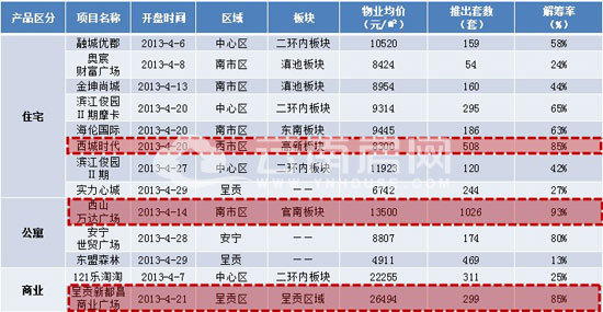 2013年4月昆明房地產(chǎn)市場開盤推量分析