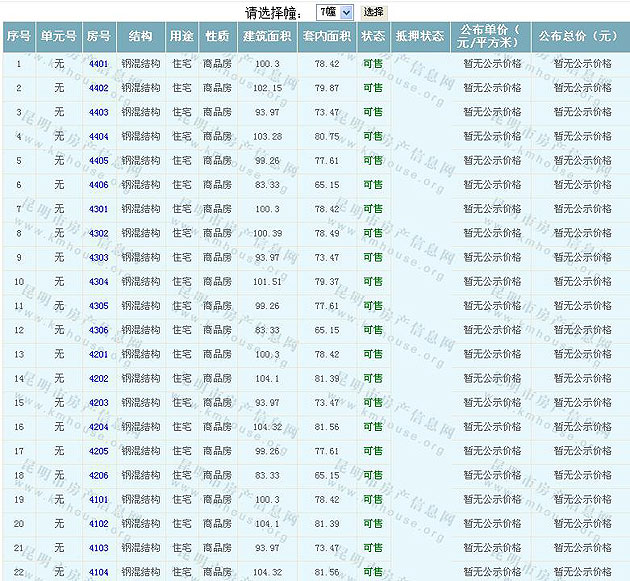 根據(jù)云南省物價局關(guān)于發(fā)布《云南省商品房銷售明碼標價實施細則(試行)》的通知,現(xiàn)將該項目商品住房的準售房源及每套房屋價格向社會公布,房地產(chǎn)開發(fā)企業(yè)應嚴格按照公布價格,商品房銷售明碼標價實行一套一標。商品房經(jīng)營者應當對每套商品房按照建筑面具進行明碼標價,否則,房產(chǎn)登記機關(guān)不予登記備案。準售房源及房價信息如下: