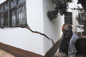 “從去年年底,我們就陸續(xù)接到住戶有關墻體開裂的投訴,整個小區(qū)有20多戶出現(xiàn)了這樣的問題!痹撠撠熑吮硎荆拥酵对V后,該小區(qū)物業(yè)管理人員曾多方咨詢相關的業(yè)內人士,得出的結論是,可能是由于連年干旱,地下水位下降,地下含水層泥水粘稠度不夠,導致地質下沉,小區(qū)樓房圍堰或陽臺外墻也就出現(xiàn)了開裂。