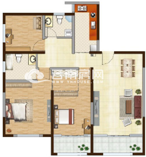 88.34平米的戶型也為三室兩廳一廚一衛(wèi)設(shè)計,01號房,端頭房,西北向,是6個戶型中最方正的一個,也是通透性最好的一個戶型。該戶型兼具了動靜區(qū)分明顯,明廚明衛(wèi)設(shè)計的優(yōu)點(diǎn),此外該戶型為雙陽臺設(shè)計,主人可在中間臥室外的陽臺上連曬衣物,還可以養(yǎng)一些花花草草,是個不錯的戶型。