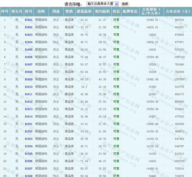 根據(jù)云南省物價局關于發(fā)布《云南省商品房銷售明碼標價實施細則(試行)》的通知,現(xiàn)將該項目商品住房的準售房源及每套房屋價格向社會公布,房地產(chǎn)開發(fā)企業(yè)應嚴格按照公布價格,商品房銷售明碼標價實行一套一標。商品房經(jīng)營者應當對每套商品房按照建筑面具進行明碼標價,否則,房產(chǎn)登記機關不予登記備案。準售房源及房價信息如下: