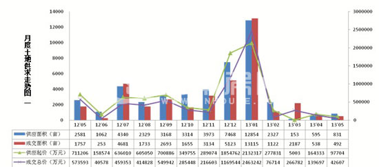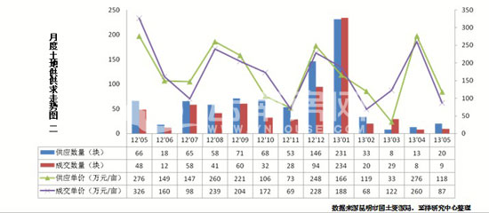 昆明5月土地供應(yīng)面積保持3月以來的回升勢頭,但是土地交易面積與4月基本持平,供求較去年同期下降。