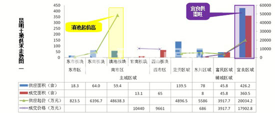 5月昆明土地供求面積集中于輔城宜良區(qū)域,供求占比均超過總供求的50%;滇池板塊供應(yīng)起價最高。