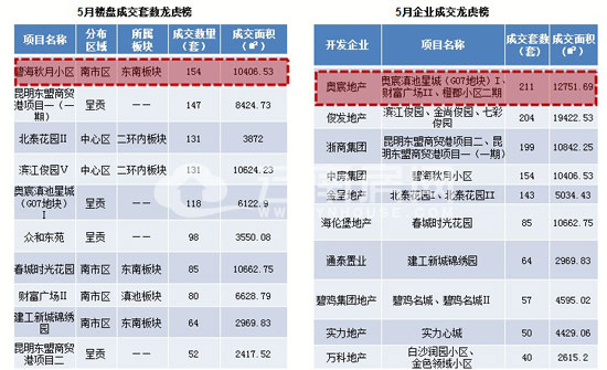 碧海秋月小區(qū)以154套銷售量成為5月樓盤銷冠;奧城地產憑借旗下3個項目以211套銷售量成為本月企業(yè)售冠。