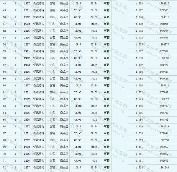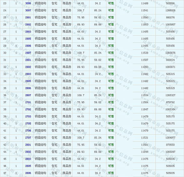根據(jù)云南省物價局關(guān)于發(fā)布《云南省商品房銷售明碼標(biāo)價實施細(xì)則(試行)》的通知,現(xiàn)將該項目商品住房的準(zhǔn)售房源及每套房屋價格向社會公布,房地產(chǎn)開發(fā)企業(yè)應(yīng)嚴(yán)格按照公布價格,商品房銷售明碼標(biāo)價實行一套一標(biāo)。商品房經(jīng)營者應(yīng)當(dāng)對每套商品房按照建筑面具進(jìn)行明碼標(biāo)價,否則,房產(chǎn)登記機(jī)關(guān)不予登記備案。準(zhǔn)售房源及房價信息如下: